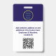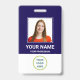 Personalize this custom employee name badge with a photo, scan the QR code (always readable, it works!) and business logo. A simple business design in navy blue and white colours, fully customizable in front and back sizes, sans-serif basic and modern fonts, and a professional and clear look. Available with a lanyard, metal clip, or retractable. There is no minimum order.