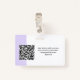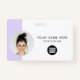 Easily personalize this Custom Horizontal Business Minimalist Employee Name Badge with Photo, Scan Qr Code or Scan Bar Code and business logo. A simple business design with round photo, in lavender violet and white colours fully customizable in front and back sizes, sans-serif basic and modern fonts and a professional and clear look. Avaiable with lanyard, metal clip or with retractable. No minimum order.
