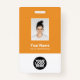 Easily personalize this Custom Employee Name Badge with Photo, Scan Qr Code (always readable, it works!) and business logo. A simple business design in modern tangerine orange and white colours fully customizable in front and back sizes, sans-serif basic and modern fonts and a professional and clear look. Avaiable with lanyard, metal clip or with retractable. No minimum order.