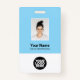 Easily personalize this Custom Employee Name Badge with Photo, Scan Qr Code (always readable, it works!) and business logo. A simple business design in cute baby light blue and white colours fully customizable in front and back sizes, sans-serif basic and modern fonts and a professional and clear look. Avaiable with lanyard, metal clip or with retractable. No minimum order.