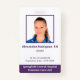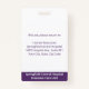 Keep your hospital or medical practice safe with custom photo ID badges featuring your employee's photo, name, job title, and ID number, as well as the business name. You can also include a department if you like. Perfect for a nurse or other staff. On the back you can add more information, such as where to return the badge if it gets lost. Customize it with a photo and custom text in the sidebar. The square photo has a thin purple border on a white background. The text is purple except for the hospital name at the bottom which is white on a purple band.