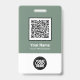 Easily personalize this Custom Employee Name Badge with or without Photo, Qr Code, Scan Bar Code and business logo. A simple business design in sage green and white colours fully customizable in front and back sizes, sans-serif basic and modern fonts and a professional and clear look. Avaiable with lanyard, metal clip or with retractable. No minimum order.