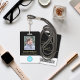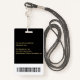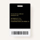 Create your own custom, personalized, durable PVC plastic, won't fade or tear, cool modern trendy black and white, name photo ID badge, featuring faux gold font, with choice of attachments - lanyard, metal clip, retractable, or none. To personalize, enter the name of the employee / staff / executive, their designation, and any additional information like employee ID, issue & expiry date of the badge, if lost return to & the address, etc. Next add the photo of the employee / staff / executive, add the business / company logo, and add the barcode. While you type/design, you'll be able to see a preview of your badge, throughout. Great for small business, corporate, school, restaurant, office, concert, retail, hospital, clinic, and for employee, staff, doctor, teacher, student.