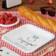 These paper plates say Engaged! along with a diamond engagement ring and the bride and grooms names on the bottom. The perfect custom paper plates for an engagement party.