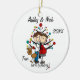 A cute, fun ceramic ornament featuring a stick figure expectant couple, a dog, holiday tree, and text that reads "We're Expecting!" with an area you can add your names or surname, the dog's name, and the add the current year! You can also customize the back of this cute stick figure holiday ornament!