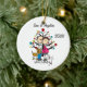 A cute, fun ceramic ornament featuring a stick figure expectant couple, a large brown dog, small white dog, holiday tree, and text that reads "We're Expecting!" with an area you can add your names or surname and the add the current year!