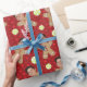 Custom Face Photo Gingerbread Men Red Christmas Wrapping Paper