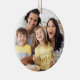 Create a family keepsake holiday ornament with 2 photos featuring a handwritten script typography title FAMILY in an editable gold colour personalized with a family name and year. Start or keep up a family ornament tradition or give as gifts to family and friends. Makes a great gift to share with family and friends. CHANGES: You can change the colour of the font overlay for easier reading on your picture by clicking on the CUSTOMIZE FURTHER tab. For modifications or assistance, contact the designer BEFORE ORDERING via Zazzle Chat or makeitaboutyoustore@gmail.com.