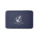 This midnight blue bath mat has a white ship's anchor and a place to personalize the bath mat with the family's name and year established.