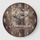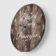Fun family clock with wood plank textured background. Family name text and est. date are all customizable. Phrase can be change but reads "blessed to be a family with custom family name and established date option.