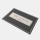 Create a family name doormat to greet friends and family, with your family name in soft charcoal gray and cream. Your family name it centered within a frame, creating a graceful welcome with a sense of heritage. The typeface is inspired from first-century Roman inscriptions with classical proportions but adding a modern flair, making it popular for elegant, historic-feeling designs.