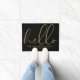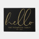 An elegant black and gold doormat featuring beautiful script calligraphy hello and personalized with your family name and special date. Designed by Thisisnotme©