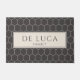 Create a family name doormat to greet friends and family, with your family name in soft charcoal gray and cream with a hexagon tile pattern background. Your family name it centered within a frame, creating a graceful welcome with a sense of heritage. The typeface is inspired from first-century Roman inscriptions with classical proportions but adding a modern flair, making it popular for elegant, historic-feeling designs.