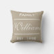 Stylish, fun and personal family name pillow design with customizable text areas for the name of the family and year the family was established (wedding/child's birth/other important anniversary). The beige background colour can be changed to any other colour.