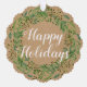 Classic Christmas holiday ornament card with 'Happy Holidays' greeting wish on rustic green laurel wreath leaves motif on a faux brown kraft paper background. With option to customize or personalize with your family name and (limited) text of your choice.