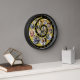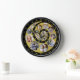 This beautifully intricate photo collage clock includes your family memories spiralling inward toward the centre in a nautilus shape. The spiral is made in black with gold-coloured numbers and dashes to tell time, all spinning toward the middle. Use the template to upload 19 pictures. SOME TIPS: Because they form circle shapes, parts of your photos will be cut off. Photos at the ends of the spiral will be very small. Check the clock close up before ordering. If you can't find a family photo that looks good in a certain spot, consider filling that space with your favourite nature photo, flowers from your garden, or a closeup of a pattern or family quilt. IF YOU NEED HELP: "Contact" PictureCollage and select "Design Question."