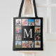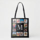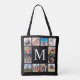 Create your own personalized 12 photo collage, tote bag with your custom images on a simple modern black background. The tote bag face also features your monogram. Add your favourite photos, designs or artworks to create something really unique.
