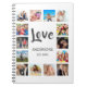 Create your own personalized 14 photo collage, notebook with your custom images on a simple modern white background. The notebook face also features your family name, established year and a "Love" handwritten script. Add your favorite photos, designs or artworks to create something really unique.