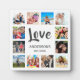 Create your own personalized 12 photo collage, plaque with your custom images on a simple modern white background. The plaque face also features your family name, established year and a "Love" handwritten script. Add your favourite photos, designs or artworks to create something really unique.