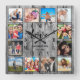 Create your own personalized 12 photo collage wall clock with your custom images on a rustic farmhouse style wooden plank background. The clock face also features your family name, established year and a "Love" handwritten script. Add your favourite photos, designs or artworks to create something really unique. To edit this design template, simply upload your own images and edit text fields as shown above. You can easily add more text or images, customize fonts and background.