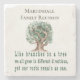 Custom Family Tree Reunion coaster home accessory. Modern watercolor sturdy family tree. Family tree quote: "Our family. Like branches on a tree we all grow in different directions, yet our roots remain as one." Monogrammed with your family name. Elegant and stylish.