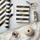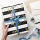Custom Faux Gold Script on Black and White Stripes Wrapping Paper