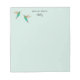Pretty custom notepad featuring fiery-throated hummingbirds on a light turquoise background.