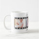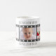 Personalized Photo Keepsake. Celebrate your most cherished moments with this customizable film strip photo mug. Featuring a unique movie reel-inspired design, this mug lets you showcase three of your favourite photos framed in a cinematic layout, along with your custom text above and below. Perfect as a heartfelt gift for parents, grandparents, or anyone who enjoys their coffee with a side of memories.