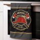 Personalized firefighter kitchen towel featuring a classic fire department badge design. Customize with a fire station name, department, or custom text to make it truly one-of-a-kind.