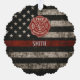 Honor the bravery and dedication of firefighters with this rustic Thin Red Line Christmas ornament. Featuring a distressed American flag background and a bold red line, this keepsake adds a meaningful touch to any holiday tree.