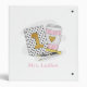 This first grade teacher personalized binder keep a teacher's papers organized when leaving their room. Pattern has white with black polka dot notebook with a gold one, heart coffee, ruler, pen and pencil. This white with black polka dot notebook design can be found on other items in my shop, PageCreativeDesigns.