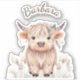 Personalized first name rustic cute modern boho highland cow on white background sticker, ideal for decorating for school supplies or anything you want.