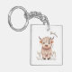Personalized first name rustic cute modern boho highland cow on white background keychain, perfect as a thoughtful gift or for a girly party favour.
