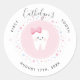 Personalized First Tooth party decorations. Peach pink sticker with cute baby tooth, editable name and milestone date. Visit the shop to see all the First Tooth collection.