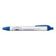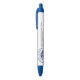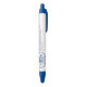 Customize this fish and tackle shop marketing pen for a fisherman business. A cool periwinkle and navy blue fishing design with an open mouthed bass and your custom company details on the side.