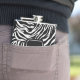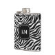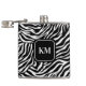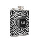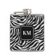 This liquid flask is shown in a safari zebra print with sample custom initials.