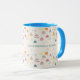 birthday gift coffee mug, whimsical fireworks mug, fun birthday mug design, hand drawn cake mug, colourful celebration mug, cream party theme mug, personalized name mug birthday, cheerful coffee mug gift, cute birthday doodle mug, floating cakes design mug
