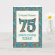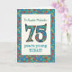 A pretty Age-specific Birthday Card for a Seventy-five-year-old to personalize, with the number 75 and the border filled with a colourful retro floral pattern on a teal background. The floral pattern is part of the Posh & Painterly 'Granny Print' collection, from a hand-painted paper collage by Judy Adamson. This design will fit all Greeting Card sizes.