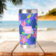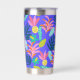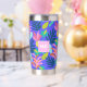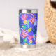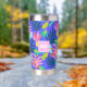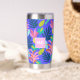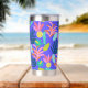 Custom floral blue monogram cute Thermal Tumbler with initials, name, quote, message. Pretty colourful modern pattern with pineapples, flowers for a unique gift. Colourful pink blue yellow thermal bottle for women, mothers, moms, wifes,teachers, boss, friends, girls, coffee tea addict for birthdays, christmas, mothers'day. Use this stainless tumbler for travel, transport for hot tea, hot coffee, cold beverages.