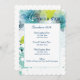 Made to create a refreshing setting for your pageant or luncheon event. Shown on a White, fine quality paper, this program/menu card is a watercolor-looking print of pastel Aqua,Blues,Lavender and Green. Fancy Scallop edges. We've created the template for you, simply change the information to your own at the right side of your screen in the selection menu. Customize further if you desire.