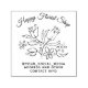 Cute flowers and text custom rubber stamp. Decorated with a pretty floral outline illustration. Top curved text is larger and it's printed in cursive script suitable for a business or personal name. Lover text is smaller and can hold several lines of custom text. Great to use as a promo or address stamp for a florist or other flower or gift related business.
