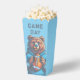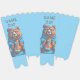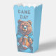 Custom football favour boxes featuring an athletic bear holding a football. Great for those hosting a party for an upcoming football game. Customize the text on the front and back of the boxes. Modern blue design. Use the template to create your own custom football favour boxes.