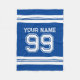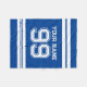 Custom football jersey number athletic stripes Fleece Blanket . Personalized blanket with sports template design. Add your own name and number. Cool Birthday gift idea for players and fans. Customizable colours to match your favourite team. Available in different sizes from small to big. Blue or custom colour.