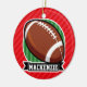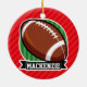 Custom Football on Red Diagonal Stripes Ceramic Ornament