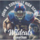 This cool customized high school football player photo laptop or water bottle sticker features white typography of your team and player name. Personalize with the mascot type across the athlete photograph.
