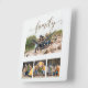 4-family photo wall clock with a cute, whimsical script font that says, "family." Add your favourite photos to this clock to make a beautiful keepsake that will be treasured for years to come.