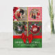 This Christmas photo card features round holiday frames with thin gold borders, red satin bow, and green velvet on the front and back! "Personalize" this card by adding (4) four family photos and your family name to this custom holiday Christmas card. If needed, you can use the 'design tool' to adjust the placement of your photos.