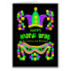 A vibrantly coloured Mardi Gras Greeting Card to personalise for anyone on the front cover, with a crown, a mask and a string of beads in bright green, purple and yellow on a black background. You can also change the inside message if you wish.