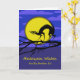 Custom Front Halloween for Brother, Cat on Branch. Paper greeting card with a slim spiked haired cat creeping out on a branch with a full yellow moon behind it. Clouds fill the dark night sky. Purple coloured area at bottom with yellow text. Customize the lower text on the cover of this card for a personalized greeting. Cat element thanks to netrat/Openclipart. © Shoaff Ballanger Studios.