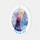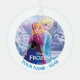 Celebrate the unbreakable bond of sisterhood with this personalized Frozen metal ornament featuring Elsa and Anna standing back-to-back in a stunning winter design. Set against a magical snowflake-filled backdrop, this ornament captures the spirit of Arendelle and makes a perfect keepsake for any Frozen fan. Customize it with a name or special message to create a unique holiday decoration or a heartfelt gift for a loved one. Perfect for adding a touch of Disney magic to your Christmas tree!